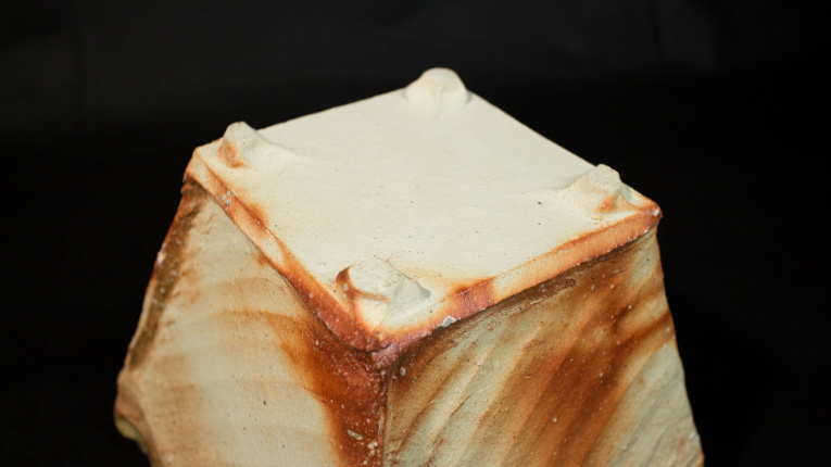 注意 - 内側は「松灰ビードロ釉」を掛けていますので、水漏れはしません。足もつけてますから床は汚しませんが、大事な床を守るために、台座の上に載せて使うと良いと思います。